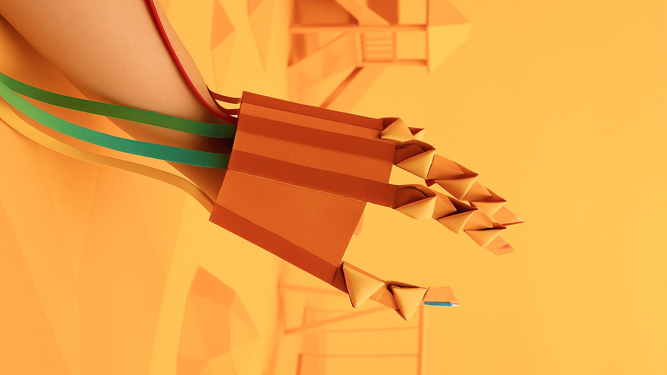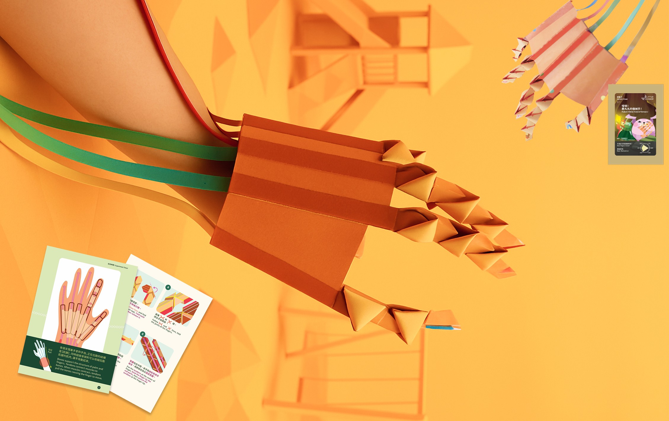 Using folded joints and multiple V-pleats, this paper model mimics how flexor tendons pull to move our fingers — transforming a complex biological system into something children can build, see, and feel in action.